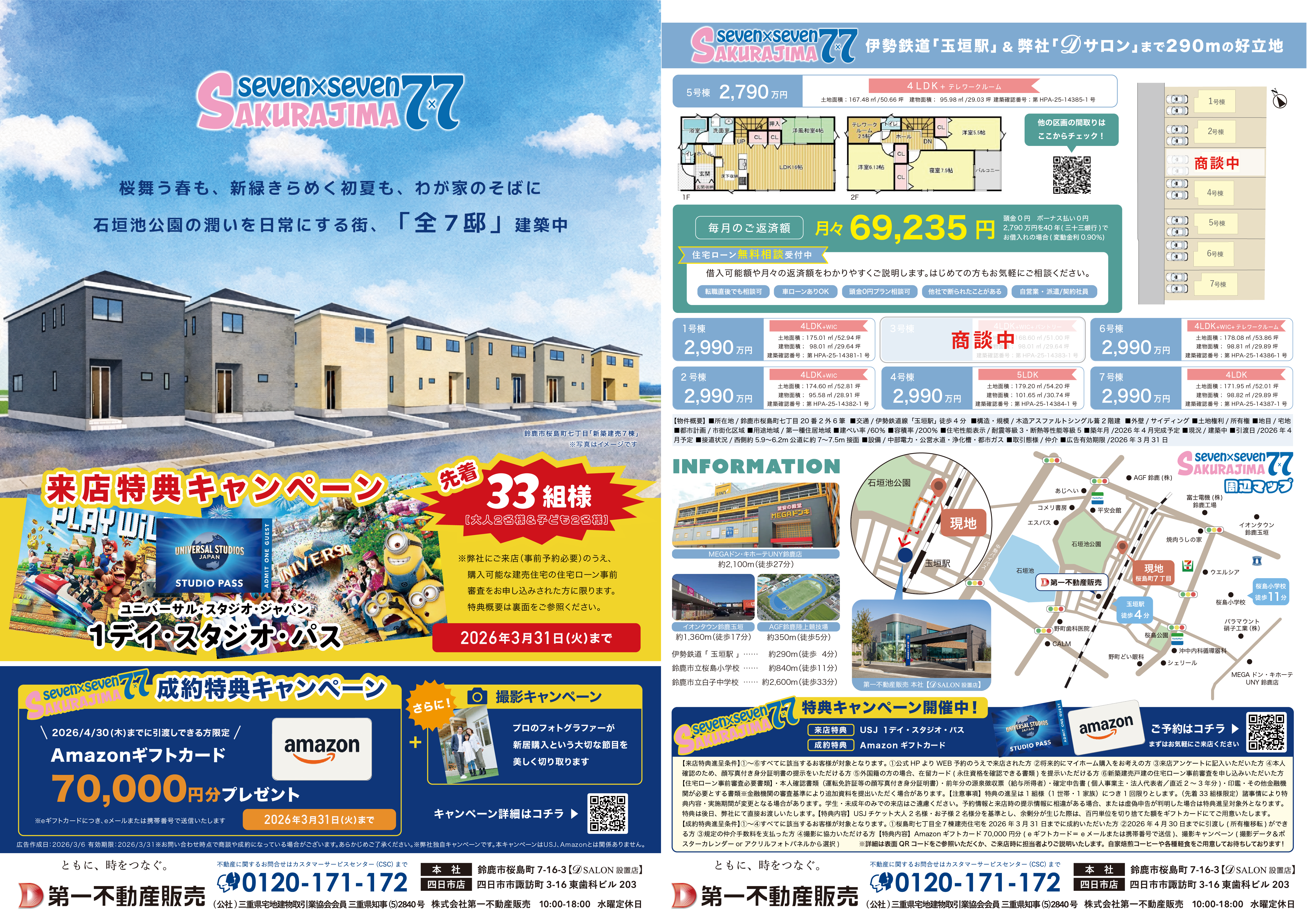 株式会社第一不動産販売では、鈴鹿市桜島町七丁目にて建築中の新築分譲住宅の販売に伴い、期間限定の来店特典キャンペーンを開催いたします。