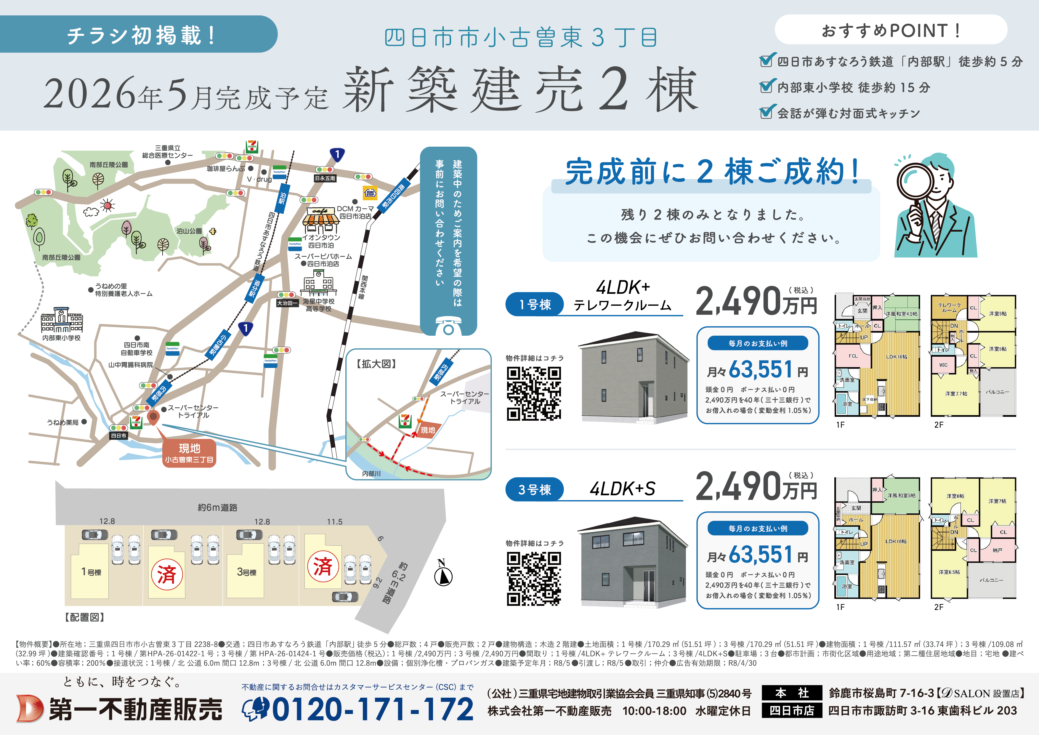 【四日市市小古曽東】新築建売2棟・分譲開始!