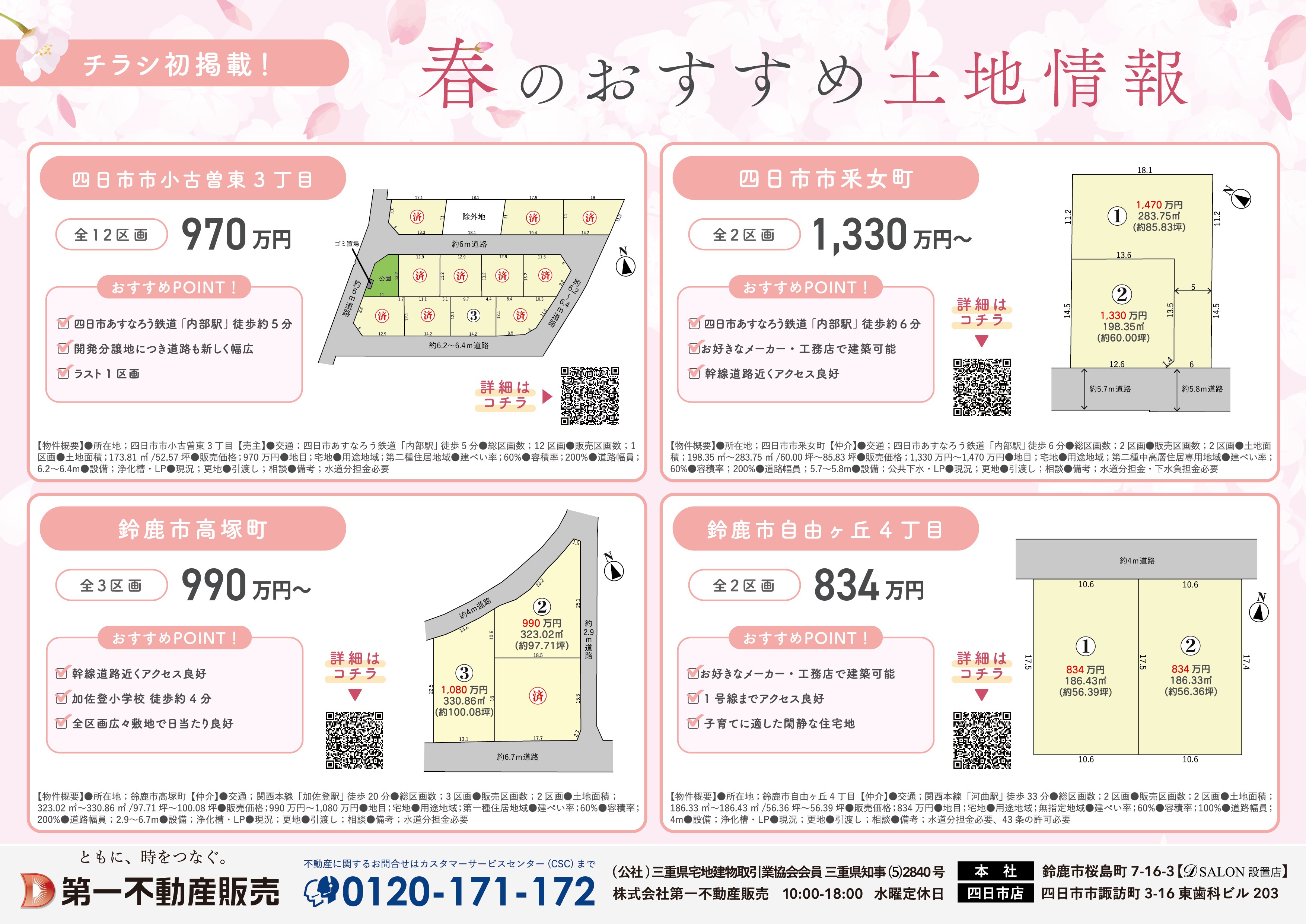 春のおすすめ土地情報(四日市・鈴鹿エリア)