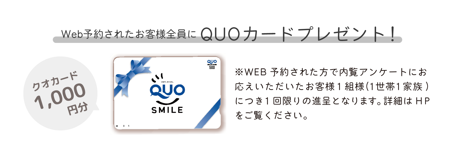 以下の①〜⑤.すべてに該当するお客様にQUOカード1,000円分をプレゼント!