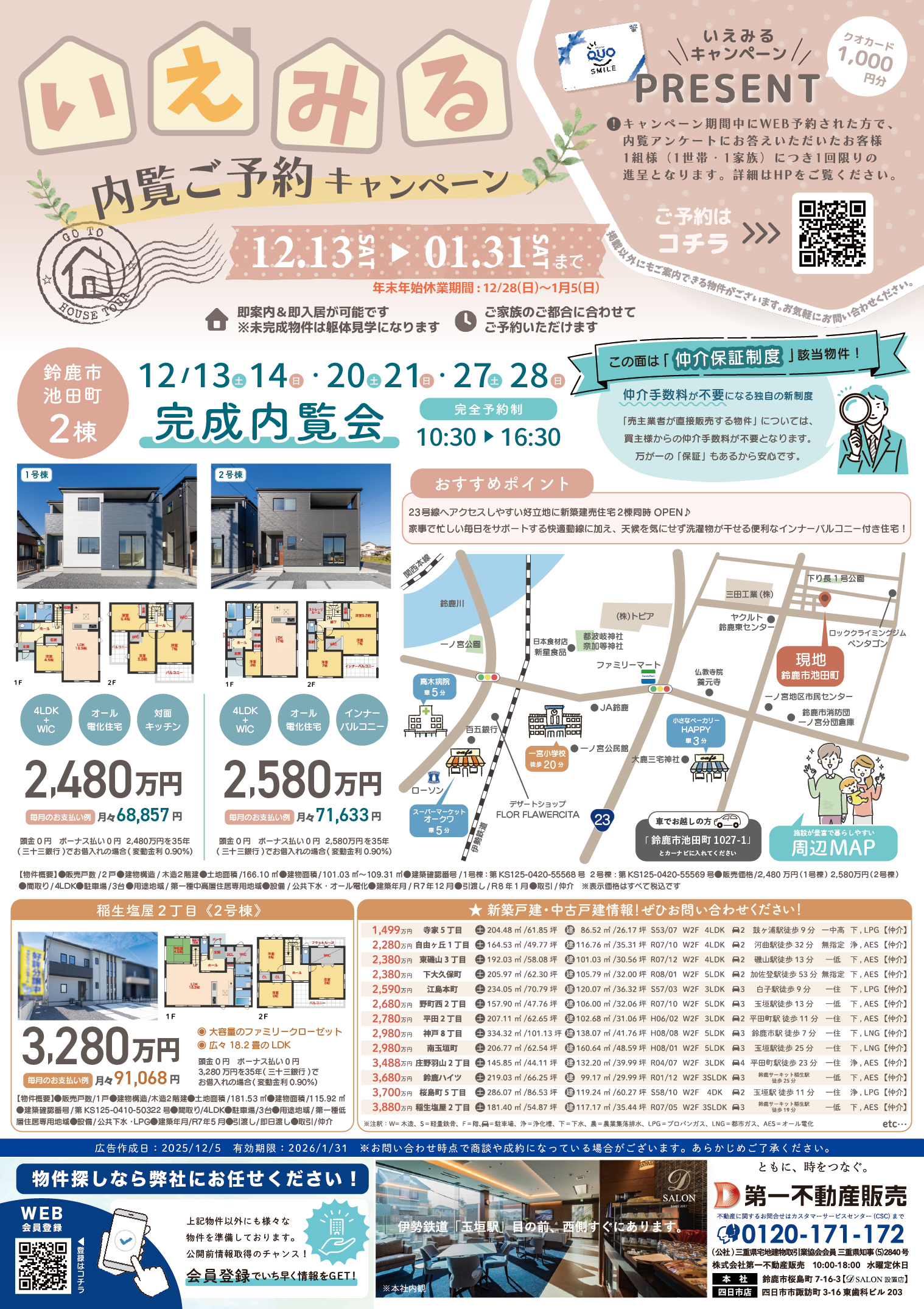 ③キャンペーン期間中【12/13(土)~1/31(土)】にご内覧のうえアンケートにご記入いただいた方。